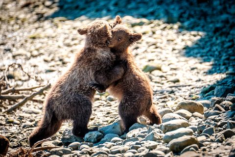 Brown bears are among the largest land carnivores on Earth – a male coastal brown bear can weigh over 1,000 pounds. These are big, fast, immensely strong animals. Accordingly, they’re almost always good to keep your distance from – at least 300 yards – and take pains to avoid surprising. A suprised bear is a bad situation.
